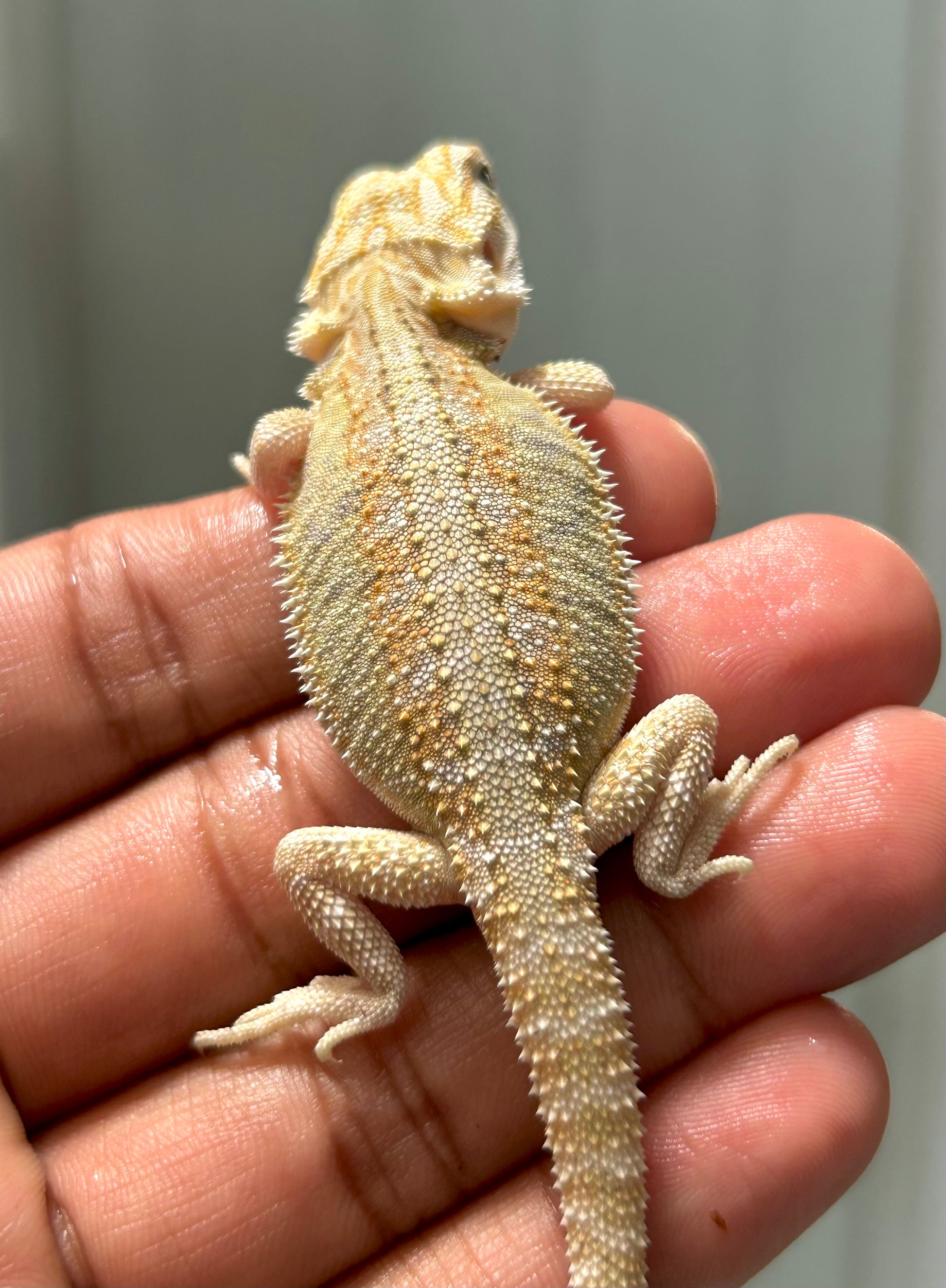 Este ejemplar es un dragón barbudo "Hypo het witblits” hembra nacida en agosto 2025.